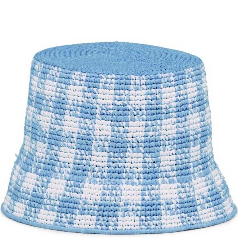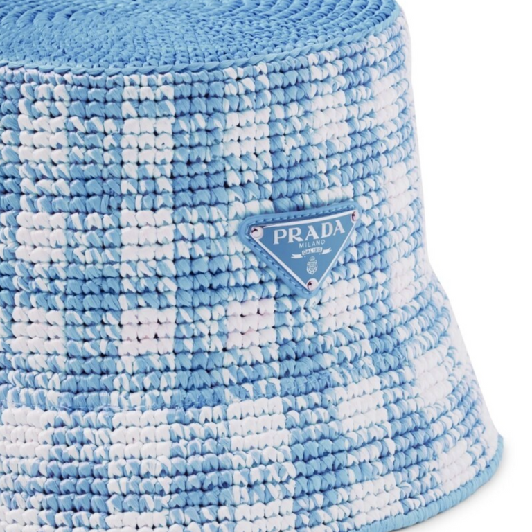 Constructed in a woven raffia design and embellished with a classic checked pattern, this bucket hat from Prada showcases the brand’s more playful side. The accessory is complete with the iconic triangle logo plaque.